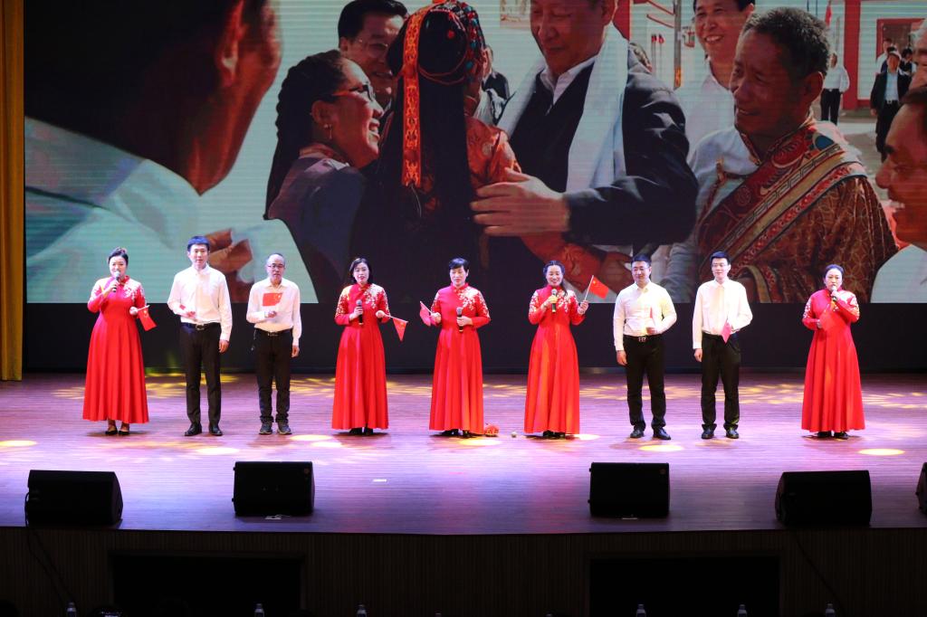音乐声起,文艺表演在开场舞《吉祥中国年》中拉开序幕。晚会内容丰富、形式多样,歌舞、小品、相声、朗诵精彩纷呈。歌舞《党旗飘扬的方向》《mojito》《又唱浏阳河》《路灯下的小姑娘》《灯火里的中国》《古韵·扇舞中华》《我和你》《万疆》《饮酒歌》舞姿优美,旋律高昂;歌曲《山河无恙在我胸》《国家》《人民军队忠于党》深沉热烈,慷慨激昂;语言类节目《时间都去哪了》《地下交通站》生动有趣,意义深刻;配乐诗朗诵《heal the world》情真意切,铿锵有力;传统武术表演《强国梦·武术魂》,将晚会气氛带入高潮。