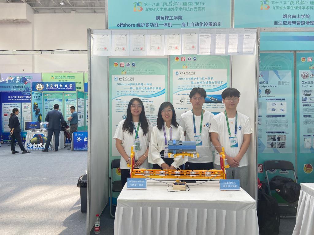 自赛事启动以来,我校团委广泛组织动员,共上报5件作品参加省级比赛。经过前期网络评审,2件优秀作品入围省级终审决赛。其中,人工智能学院《“独具慧眼”一基于多模态智能图像融合技术下的多楔带缺陷检测设备》荣获省级一等奖,机电工程学院《offshore维护多功能一体机——海上自动化设备的引领者》荣获省级一等奖,经济管理学院《“电”引未来:乡村振兴战略下电商助农发展现状与对策研究—基于烟台市电商果农的实证调研》荣获省级三等奖,机电工程学院《御凛春—无性系茶树快速繁育抗寒茶种推广的先行者》荣获省级三等奖。