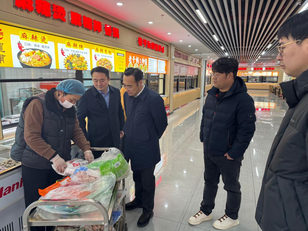一行实地查看了食堂、商业中心、施工现场等重点区域,查看超市备货情况、自来水管道冲刷及各项施工进展情况,还围绕校园食品安全、用电安全、施工安全等方面,详细查看责任落实,隐患整治与开学准备情况,听取相关部门关于新学期准备工作的情况汇报。