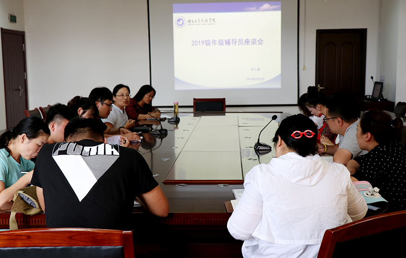 9月5日,学工部组织召开2019级新生班主任座谈会,党委副书记李荣梅、学工部部长杜娟及2019级新生年级辅导员参加会议。