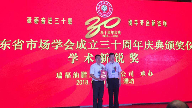 山东市场学会1988-2018三十周年庆典暨第六届营销创新高峰论坛于7月21-22日在山东潍坊举行。为表彰在营销学术界有突出贡献、创新精神的专家学者,特别设置“学术新锐”奖项。我院管理系苏洋副教授成为全省唯一的两位获奖学者之一。