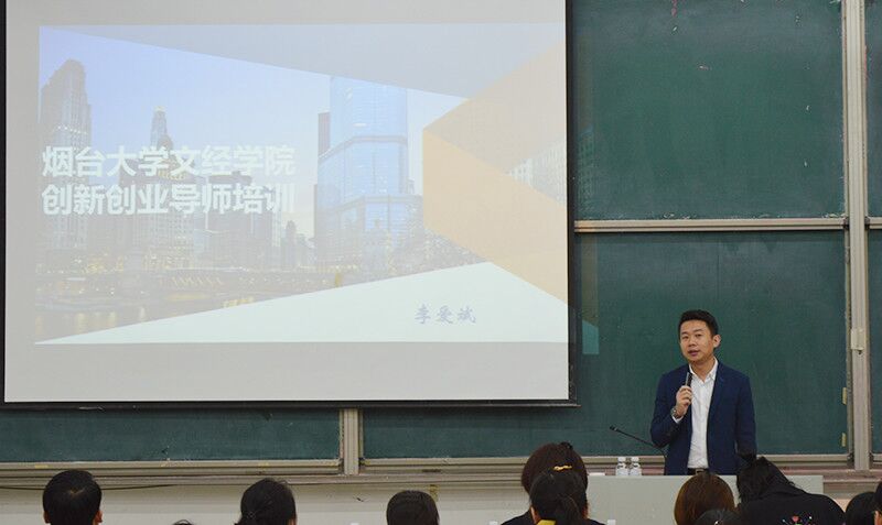 在培训前一天,我院聘请李爱斌为烟台大学文经学院创新创业导师,院长于光辉教授为其颁发聘书。