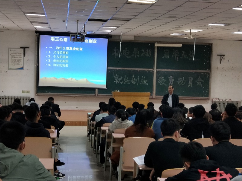 11月2日,机电工程系于二教115举办2018届毕业生就业创业教育动员会,特邀烟台未来自动装备有限公司钟梅主任担任主讲嘉宾。机电工程系主任刘加光、党支部书记刘福建、副主任刘安琴参加会议。团总支书记刘春强主持会议。