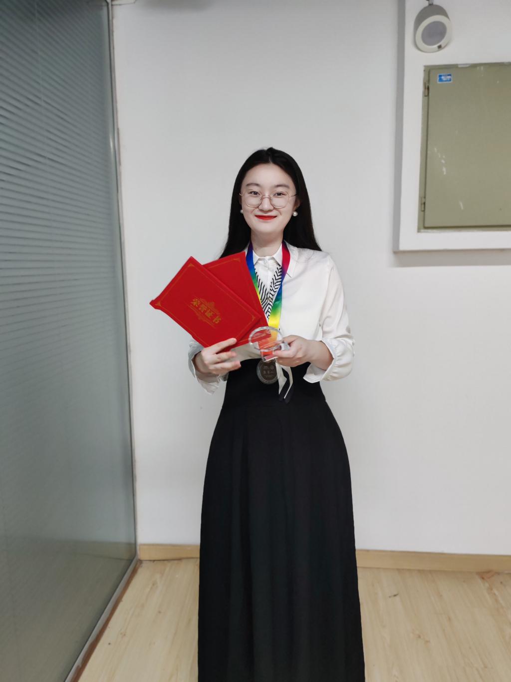 大学期间考取了上海外语高级口译证书、外研社·国际人才英语考试证书(国才)、外教社·全国跨文化能力证书、高中英语、语文教师资格证、计算机二级等级证书。学科竞赛领域,她以赛带练,以赛促学,正是这种要在自己认为值得的事情上拼尽全力的劲头,让她获得省级及以上奖项十余项,总计36项荣誉。包括专业类竞赛,如全国跨文化能力竞赛国赛二等奖(5%-10%)、省赛一等奖(2%-5%);“外研社·国才杯”国际传播力短视频大赛全国海选一等奖(15%);全国高校大学生外语水平能力大赛(英语本科组)三等奖;“外教社·词达人杯”全国大学生英语词汇能力大赛-专业组三等奖(20%)、校赛特等奖两次;“CATTI杯”全国大学生翻译大赛复赛三等奖(30%)。